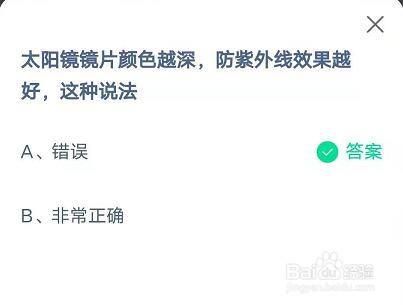 蚂蚁庄园今日问题是:太阳镜镜片颜色越深,防紫外线效果越好,这种说法?一起看答案。