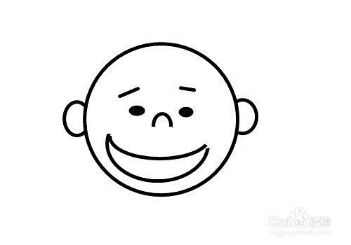 最后画上嘴巴,一个笑脸盈盈的大头宝宝便画好了