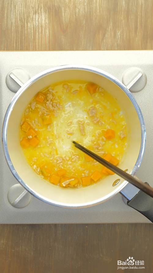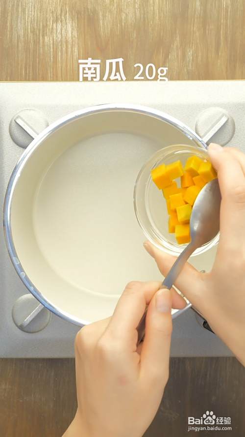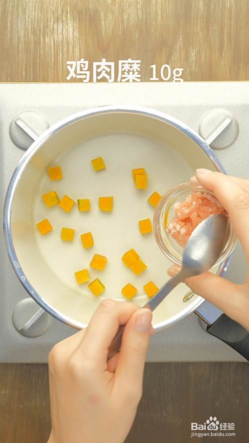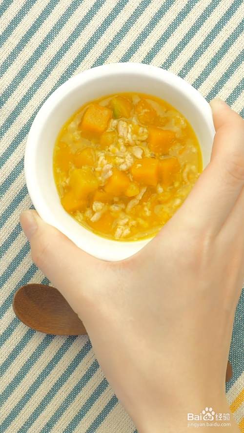 9-11个月这个阶段的辅食可以增加些颗粒感,但仍要处理成适合宝宝吞咽的粘稠状。即使是固体,还是应该用刀剁碎一点或者用辅食剪剪碎一些,菜叶、水果的大小可以为5到6毫米。如果是给宝宝喝粥的话,比如今天贝贝粒介绍的这道鸡肉南瓜粥,粥可以更稠一点了,水和米的比例建议为5比1。贝贝粒,让育儿充满欢笑。