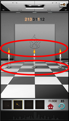按照墙上数目提示,用工具箱的火把点亮蜡烛,并且按烛台的尾部熄灭。有的童鞋质疑无法熄灭,这是因为你还选中工具箱中的火把所致,点击取消,然后再点击蜡烛即可熄灭。