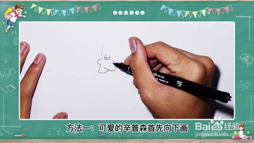首先,向下画线,画一点突出,接着向下画,向上画,向右画,然后向上画,画出眼睛。