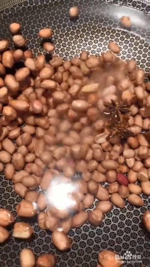 花生米冷水下锅,加入盐和八角,将花生米煮熟煮透捞出。