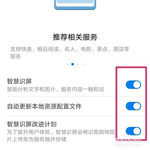 页面跳转,把智慧识屏、自动更新、改进计划,都点开。