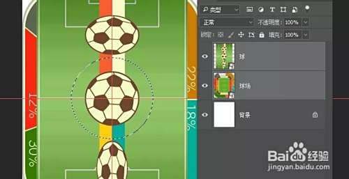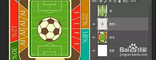 然后关闭球图层的眼睛,再按Ctrl+D取消选择,选择球场图层,按Ctrl+V粘贴,就可以将球的图层复制在球场当中了,如图所示;