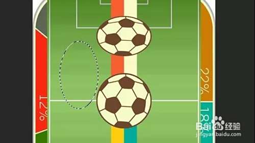 按Ctrl+D取消选区。按Ctrl+加号键将画面放大,然后将鼠标放在这两个参考线当中,按Shift+Alt键绘制出跟这个足球一样的正圆形的选区,现在可以看到,我们的选区稍微偏移了一点;