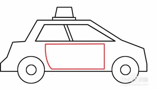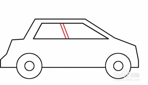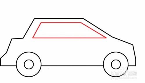 在轮廓上部分里边,用四边形画车子的窗,然后用来两条斜往右下边的斜线将窗分割成两部分。