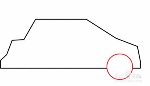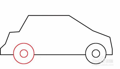 接着,在车子的左边下边,用步骤2的方法画一个轮子。