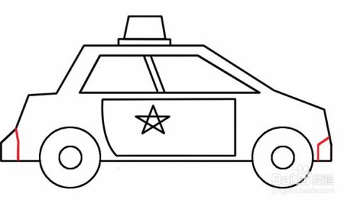 接下来,用弧线和带直角的四边形勾画出警车上的纹路。