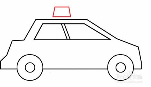 在车子顶上用类似梯形的图形勾画出警灯,接着用长方形叠加在梯形下边和车子顶上。