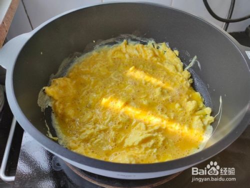 鸡蛋加一点盐搅散,起锅热油,倒入蛋液炒熟装盘备用。