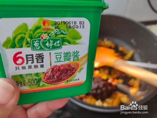 倒入2大勺葱伴侣豆瓣酱,翻炒均匀。