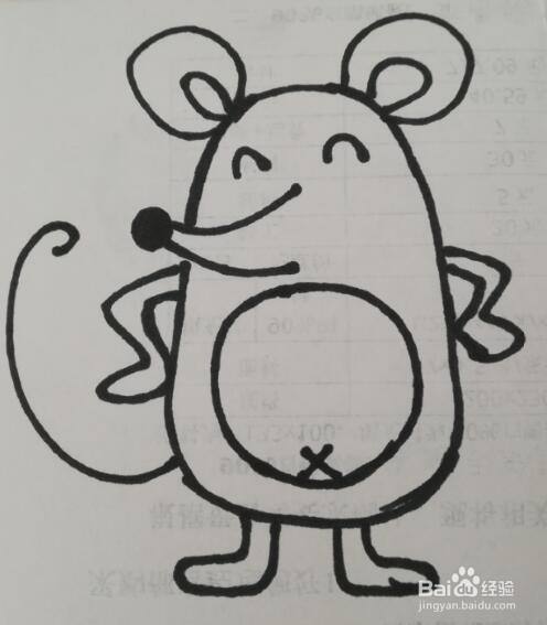 最后一步,如图所示,画出小老鼠的尾巴,完成。