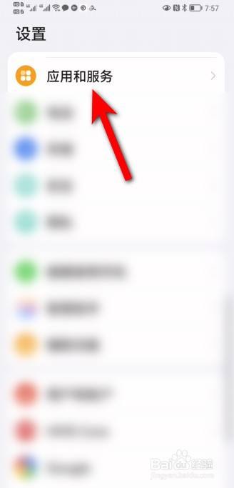 进入手机设置页面,点击应用和服务。