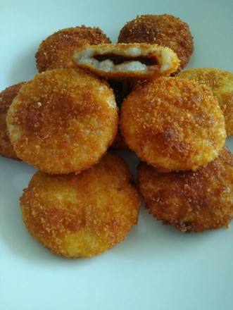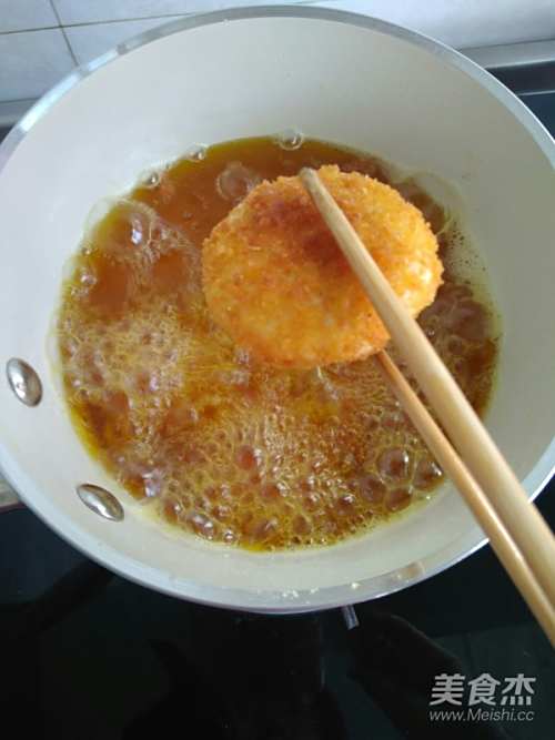 这款外皮酥脆,内里软糯的山药红豆饼,炸制完成以后最适合趁热食用。