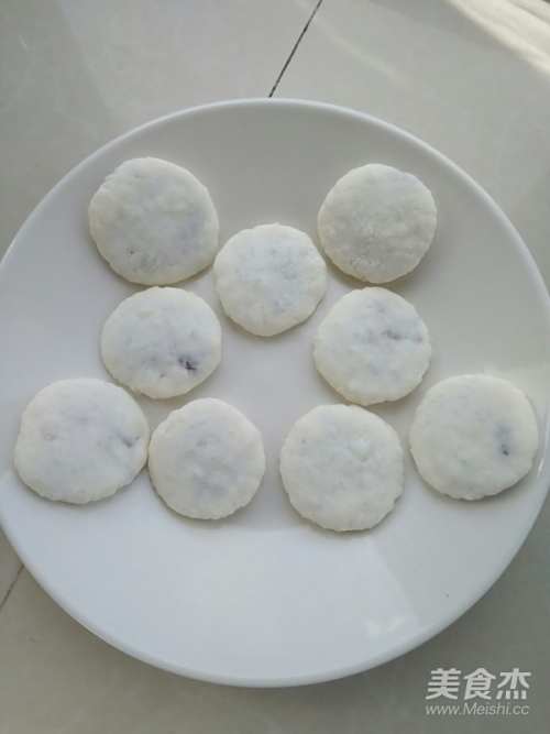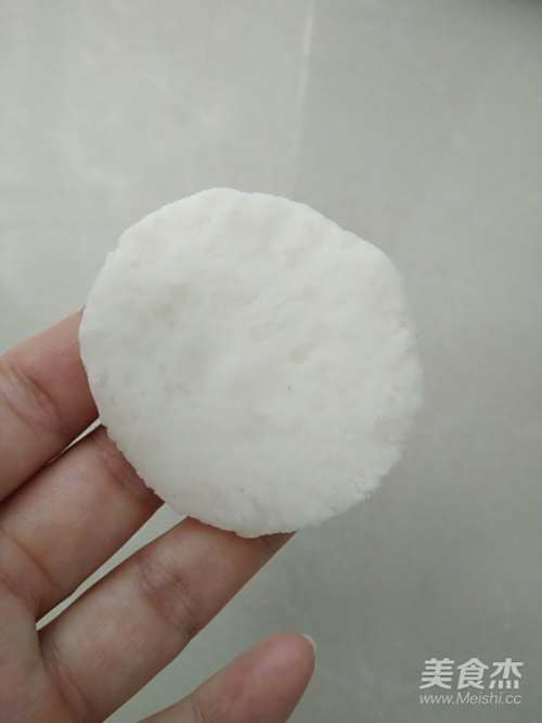6取一个面团,按扁