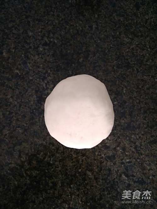 4山药泥加入玉米淀粉,和成不沾手的面团。(这个玉米淀粉的用量自己衡定,如果觉得黏手,就加适量玉米淀粉;如果面团不黏手,并且面团边缘没有出现裂纹,就表示面团达到了合适的干湿度)