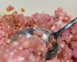 肉馅加入白胡椒粉、生抽、蛋清顺时针搅拌均匀。