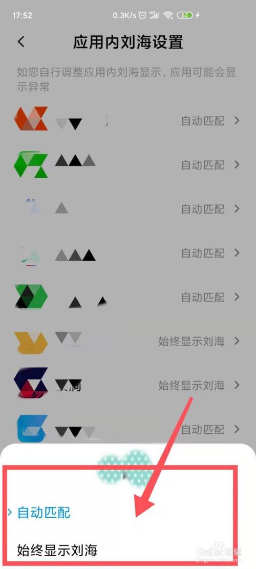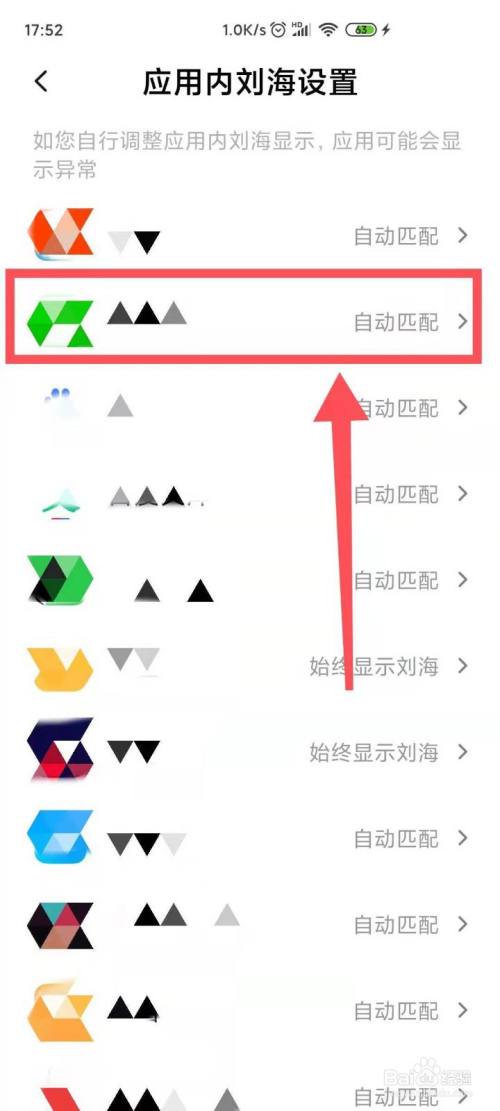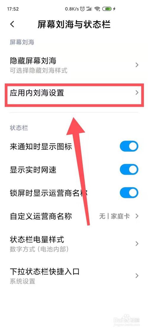 在不隐藏刘海状态下,点击“应用内刘海设置”