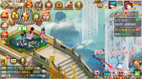 首先游戏玩家进入游戏以后,点击游戏界面下方的“技能”选项。