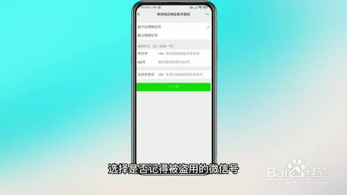 根据具体情况选择是否记得被盗用的微信号,再填入相关信息,最后点击下一步即可。