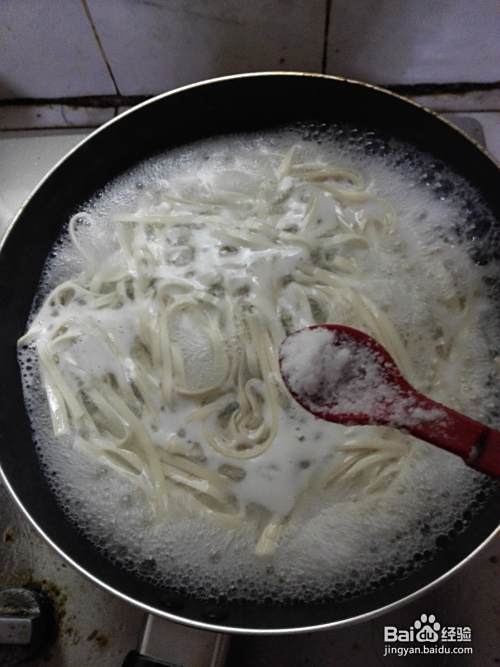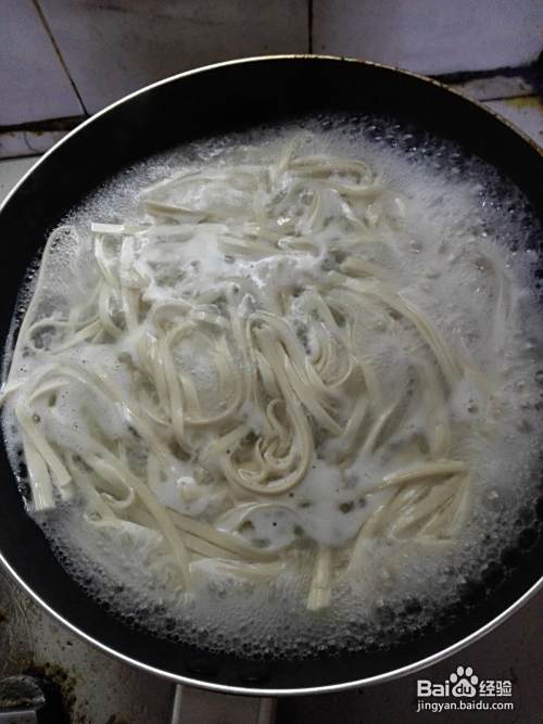 煮一会,在煮的过程中用筷子将面条挑开,打散;