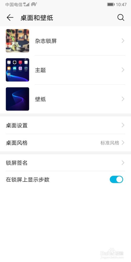 第三步:返回设置找到桌面与壁纸点击杂志锁屏关掉它。