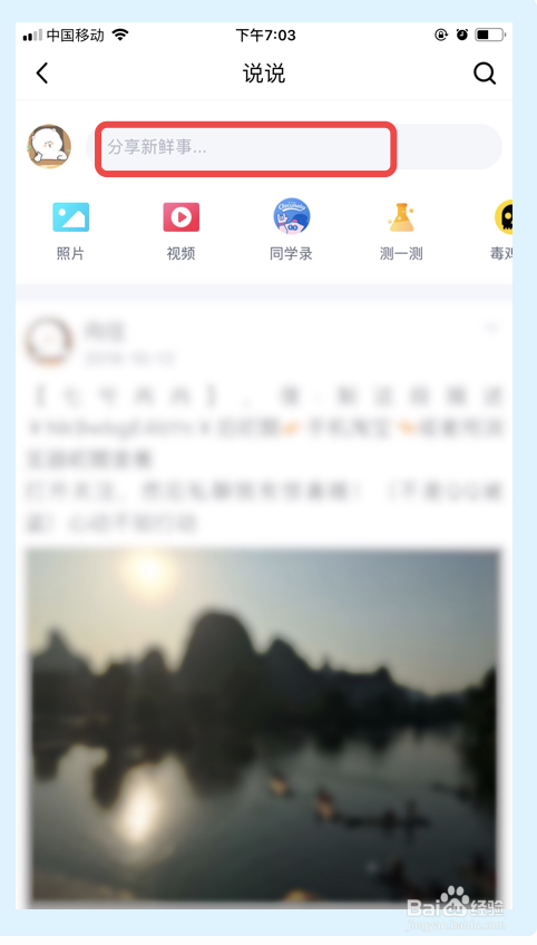 6.在接下来的界面,选择并点击【分享新鲜事...】;