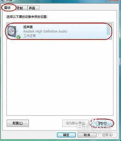 (1)在“控制面板”窗口中双击“声音及音频设备”图标,打开“声音及音频设备”属性对话框,它提供了检查配置系统声音环境的手段。这个对话框包含了音量、声音、音频、语声和硬件共5个选项卡。