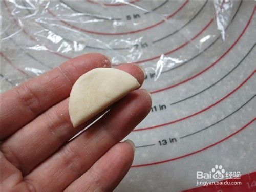 剩余的面团分两份,一份搓圆按扁从中间切开下边向内弯折作为