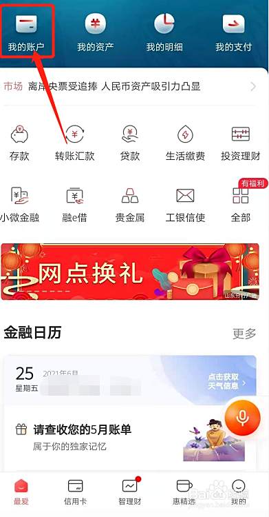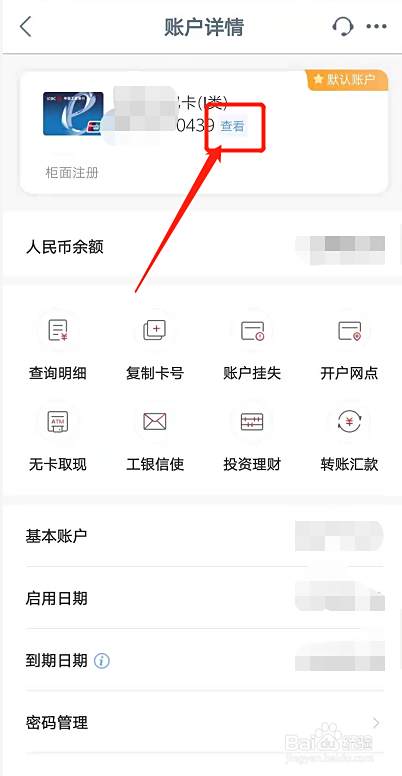 登录银行账号后,点击我的账户,点击该账户进入到详情页面,点击银行卡下方的查看,即可查看全部卡号。