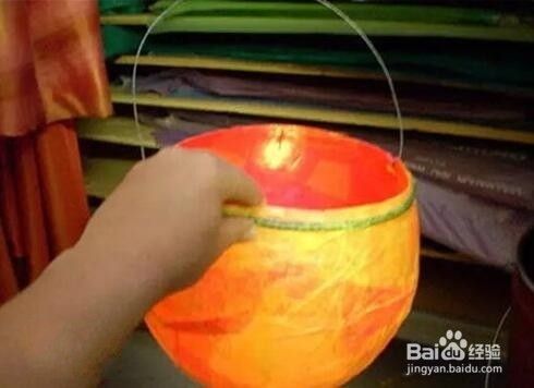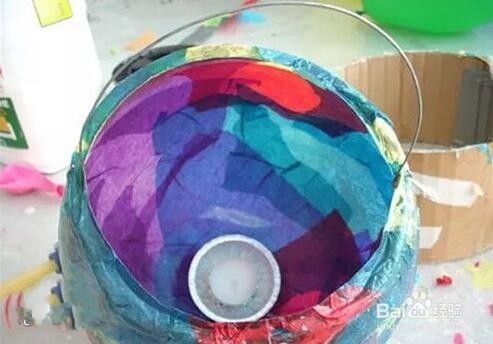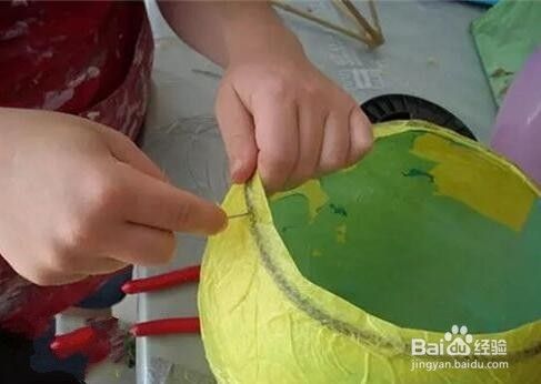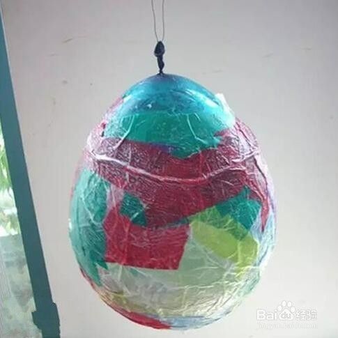 晾干后,剪掉气球上方部分,安装上铁丝提手。