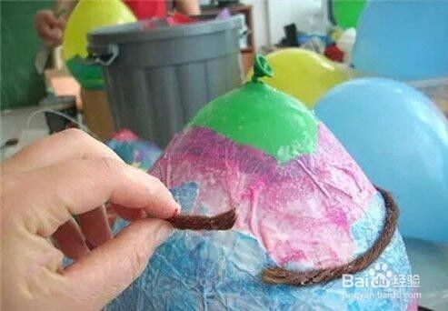 在气球靠近顶部位置缠绕绳子,方便安装提手,绳子不太太长,也不要太粗。