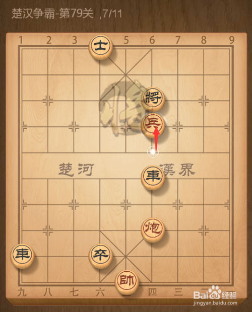 QQ象棋楚汉争霸第七十九关,通关共需11步,黑方一个兵占领了左边的士线,黑车在旁虎视眈眈,只要黑车下来一将军,红方就输了,本关通关难道还是很大的,小伙伴们要跟着我下边的图上步骤走棋。