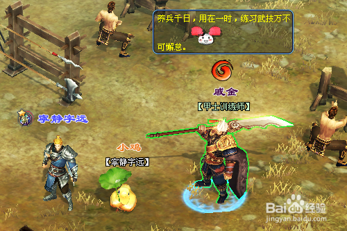 点击甲士训练师戚金,自动寻路就会带我们去甲士训练师戚金那里。到了甲士训练师戚金那里后,和他对话。