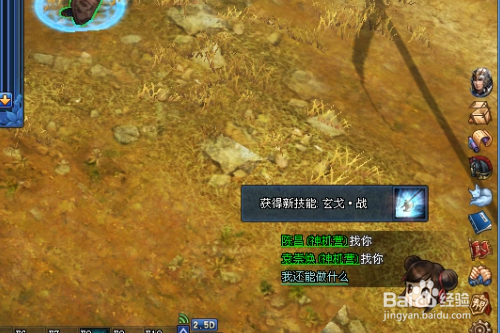 购买秘籍后,我们用鼠标右键点击存放在包裹里秘籍。这时候,你就会看见游戏界面出现了获得的新技能。