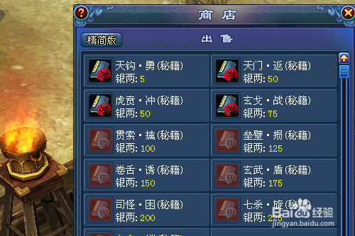 我们用鼠标点击亮色的秘籍,这个时候,我们就可以看见秘籍的价钱,点击确定就把秘籍购买了。