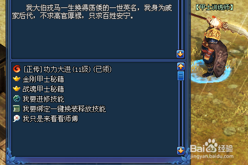 这个时候,会跳出一个对话框。在 对话框里,我们可以看见有金刚甲士秘籍和战魂甲士秘籍。点击金刚甲士秘籍。