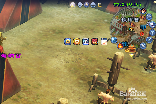我们到了神机营后,找到游戏界面右上的小地图旁边的箭头标识,点击这个标识。