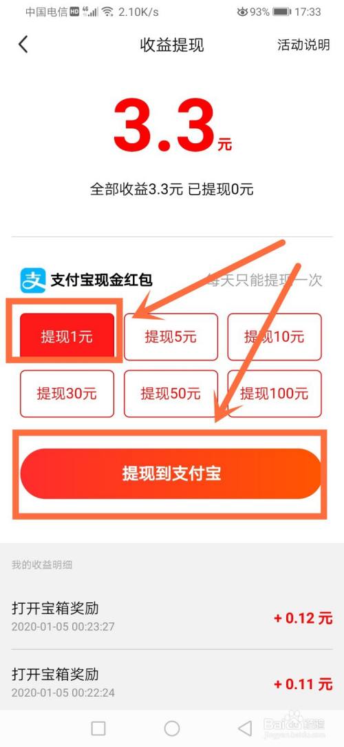 在每日赚钱界面中,点击立即提现进入。如图