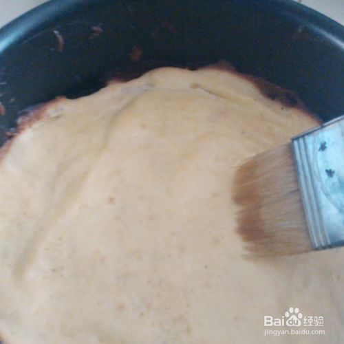 把蛋糕糊倒入模具里,1/2到2/3的厚度。