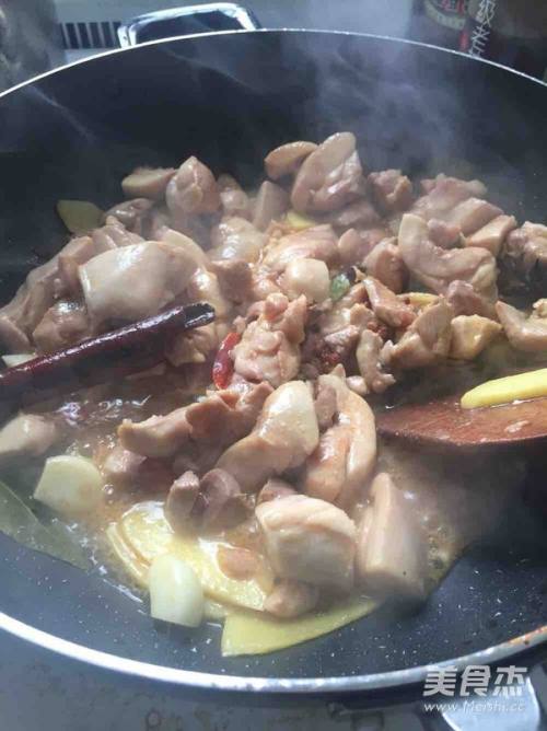 5等肉基本炒熟了就加水和啤酒 然后小火炖30分钟。