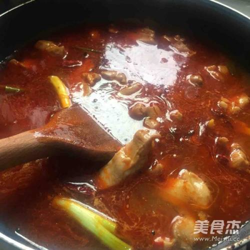 4翻炒之后接着倒入火锅料(根据自己吃辣的程度放多少) 、郫县豆瓣酱、香油两滴、生抽少许、如果喜欢吃辣也可以再放点辣椒面哦