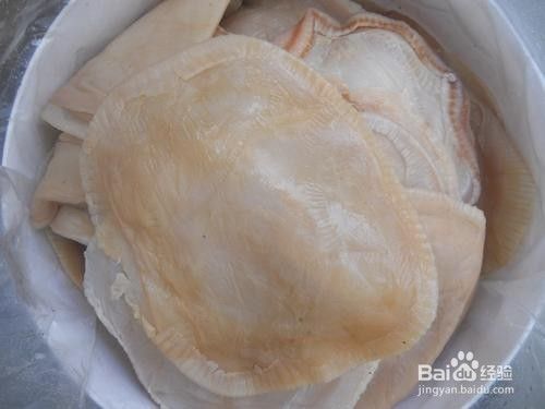 海蜇皮温水泡发,去沙洗净,切丝后入温开水中略氽,即捞入冷开水中投凉。