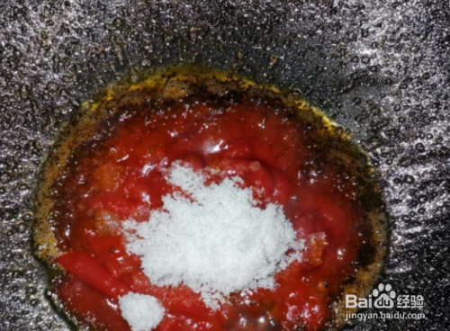 加入番茄酱,白糖翻炒均匀