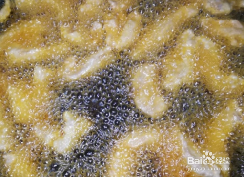 将肉条炸至金黄