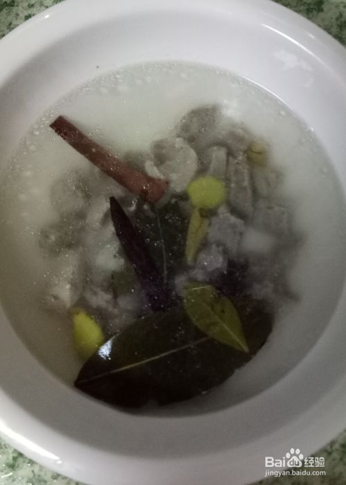 压力锅里加开水,把牛肉倒进去。在加姜片,八角,桂皮,香叶,草寇,胡椒粒,料酒,用筷子搅拌均匀,插好电压。