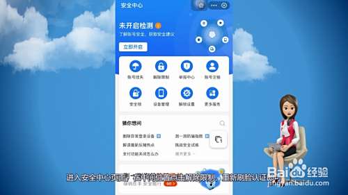 进入支付宝页面找到安全中心选项,点击解除限制重新刷脸即可,以下是详细的操作步骤: