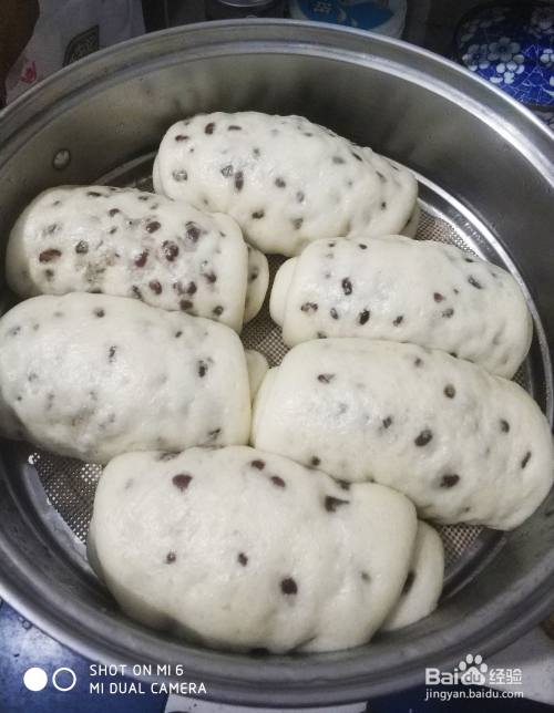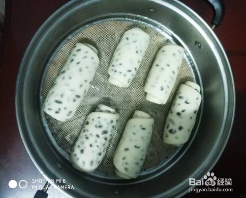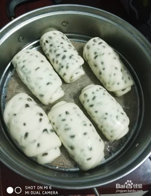下面开始蒸,蒸锅加水放上发好的红豆卷盖好盖,大火烧开后再蒸20分钟即可。整好后关火,停3分钟再打开锅盖,香甜的红豆卷就蒸好了