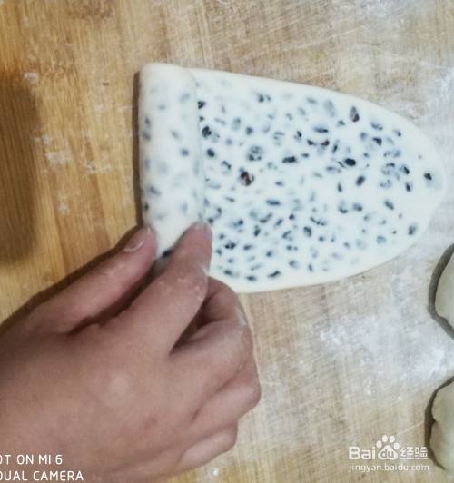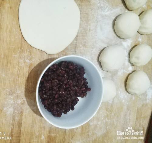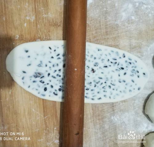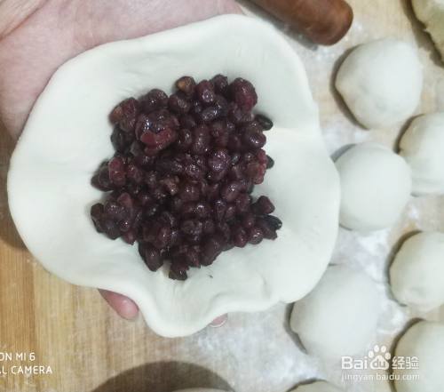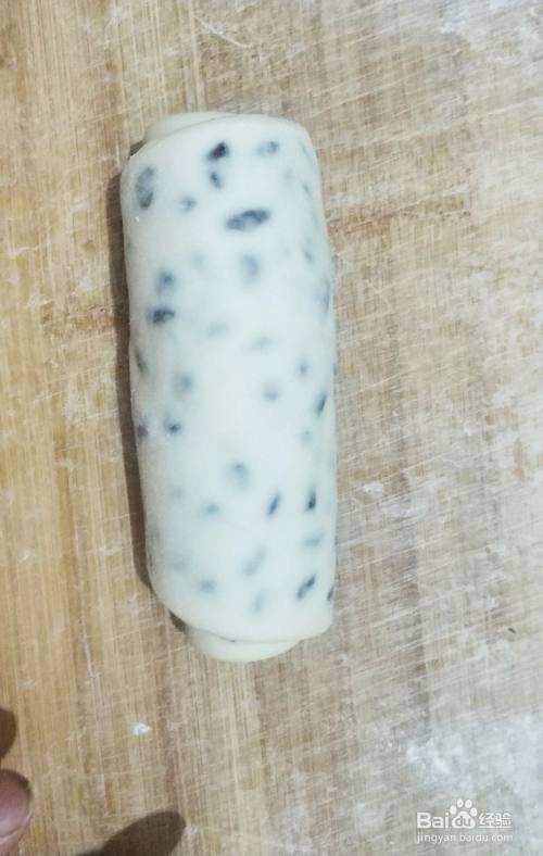 像包饺子一样把蜜红豆包上,擀成长条状,然后从一端卷起来,一个红豆卷就卷好了