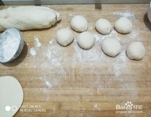 然后不用发面,直接把面团分成大小差不多的小剂子,不用太大,和平时包包子一样,把面剂子擀成包子皮